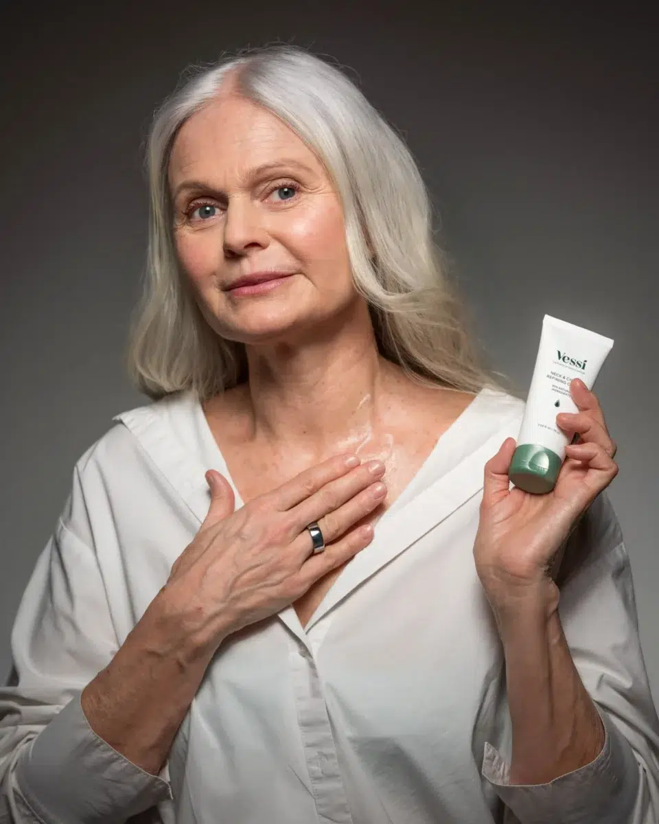 Vessi Nordic Neck & Chest Refining Cream -voiteen käyttö 4 viikon ajan johti keskimäärin 17 % kiinteämpään ihoon ja 14 % ihon kimmoisuuden lisääntymiseen.