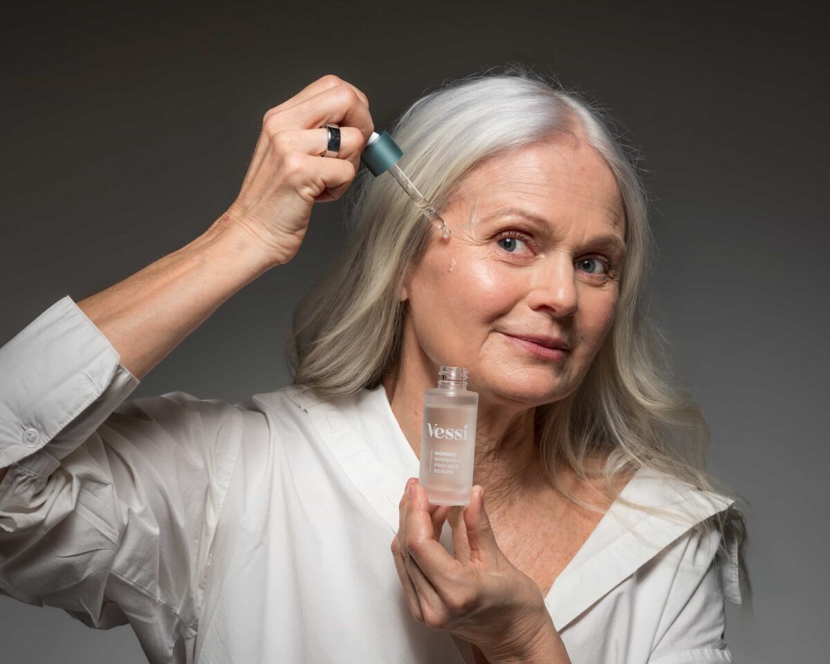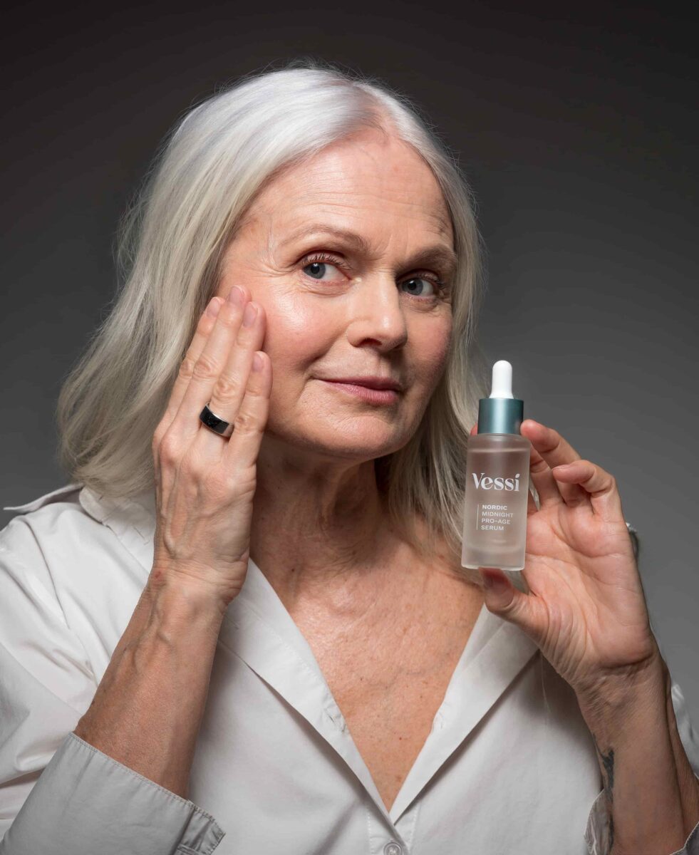 Ihon ikääntyessä siinä tapahtuu muutoksia, jotka näkyvät monin eri tavoin. Ihosta tulee kuivempi ja ohuempi, ja samalla sen kimmoisuus heikkenee. Nordic Pro-Age Serum yhdistää tehokkaita ainesosia, jotka vahvistavat ihoa näillä kaikilla osa-alueilla samanaikaisesti. Avainainesosa Progeline on peptidi, jonka on tutkitusti todettu parantavan ihon kiinteyttä ja elastisuutta: se hillitsee niin sanotun ”ikääntymisproteiinin”, progeriinin, tuotantoa ihosoluissa. Progeline stimuloi kollageenin tuotantoa, vahvistaa ihon rakennetta ja vähentää siten juonteiden ja ryppyjen näkyvyyttä. Hyaluronihappo tunnetaan erittäin kosteuttavasta vaikutuksestaan – se sitoo kosteutta ja kuljettaa sitä ihon kaikkiin kerroksiin, myös syvemmälle. Luonnolliset hedelmähapot eli alfahydroksihapot (AHA) kuorivat hellävaraisesti ja tukevat solujen uusiutumista. Kun nämä yhdistyvät mustikasta saatuihin antioksidantteihin, syntyy aktiivinen yöseerumi, joka toimii nukkuessasi – ja heräät terveemmän, sileämmän ja tasaisemman ihon kanssa.